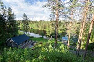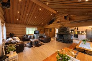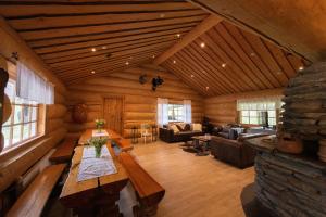 Päämökissä yhteensä nukkumatilat vähntään 10 hengelle sekä mahdollisuus lisävuoteisiin. Tuvassa iso varaava takka ja takkahuoneessa takka / leivinuuni-yhdistelmä. Päämökissä lattialämmitys sekä täysi omakotitalon varustus: