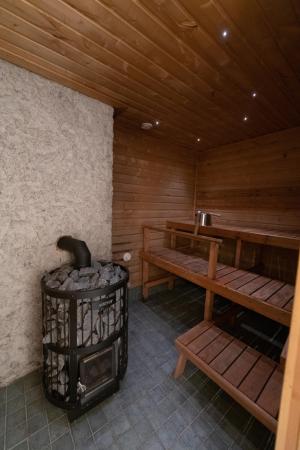 Rantasaunalla lämpiää puukiuas ja tuvan puolella varaava takka. Tuvassa on myös parvi ja majoitustilat 4 yöpyjälle.