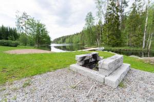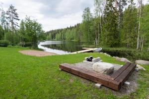 Aivan rannan tuntumassa on nuotiopaikka. Terassilla on rentouttavaa jäähdytellä löylyjen jälkeen ja katsella kun joutsenet lentävät ohi.